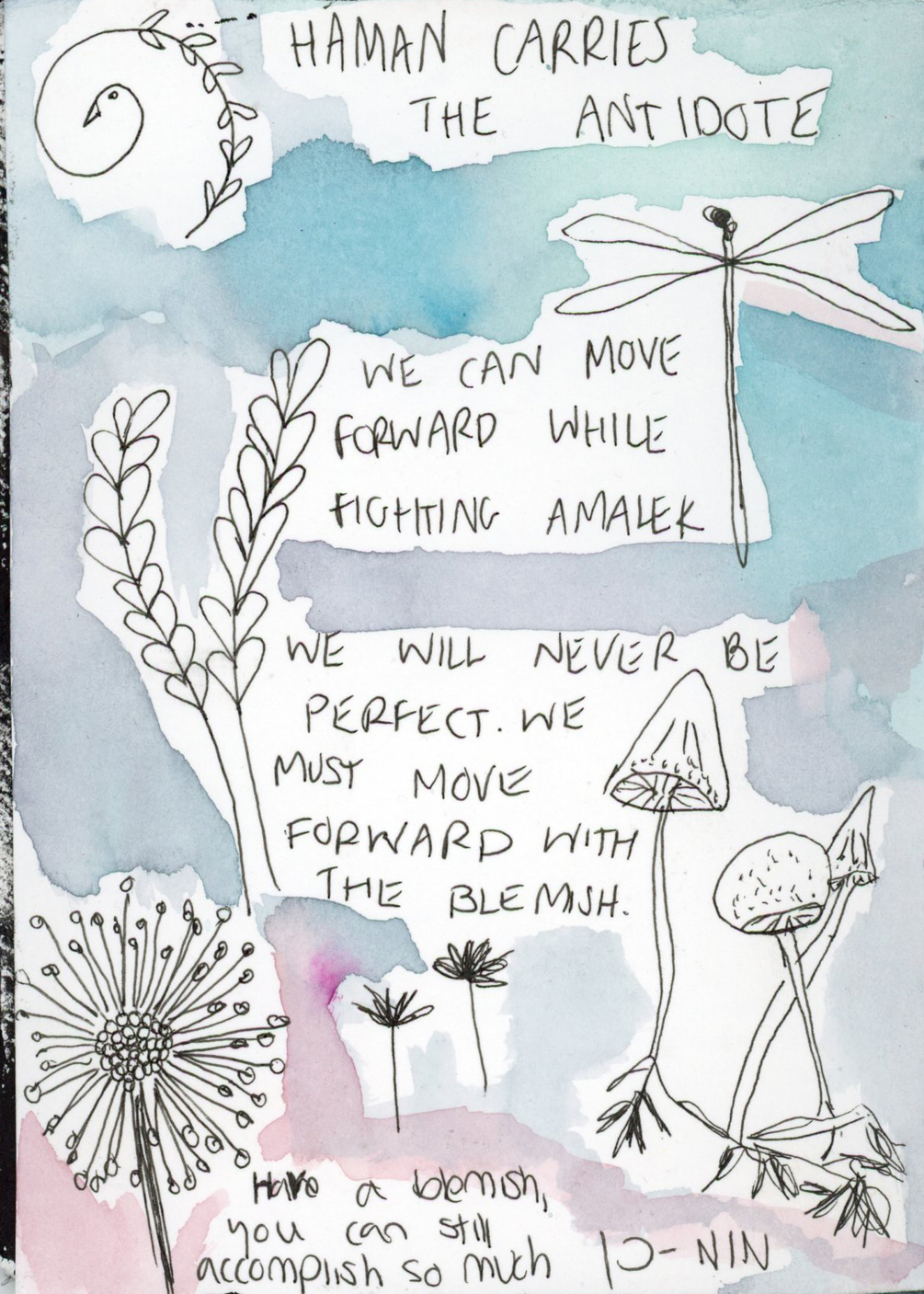 Through my journal pages, I explore the process of identity. Layer by layer, I documented the transition, embracing the essence of who I am. This work reflects the tension between release and becoming, capturing the emotional depth of transformation through mixed media, collage, and personal symbolism. Inspired by the energy of Purim, where masks both conceal and reveal, my art holds space for the in-between—the moment of recognition before stepping fully into the next version of myself.